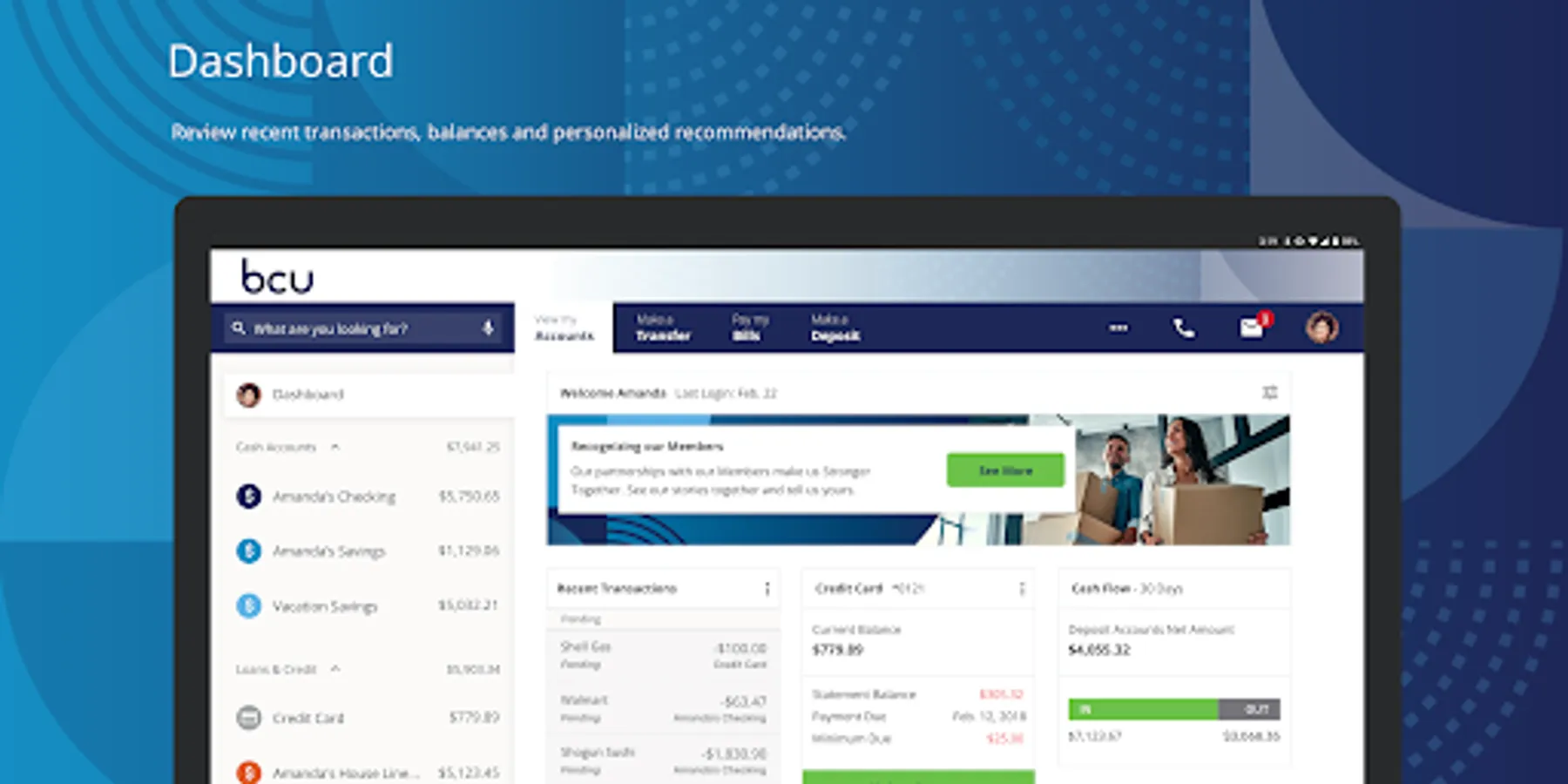 Our next generation Mobile Banking app provides a modern and friendly banking experience, with an innovative look and feel, smooth navigation, and the security you expect.
