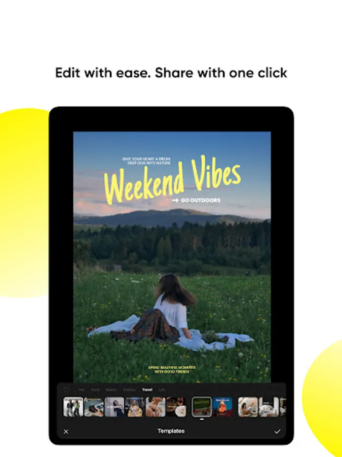 - You'll find a whole library of intuitive templates, stickers, filters and fonts for your photos and videos.