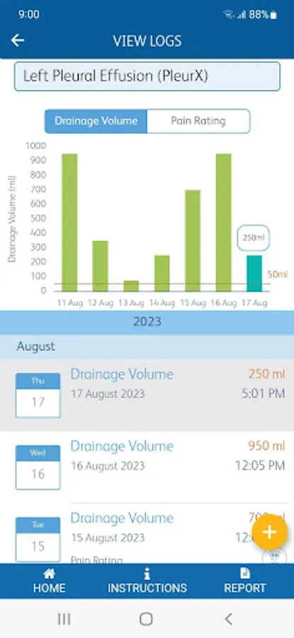 • Add pain ratings, notes and pictures to your drainage entries that can help you and your physician as you review your data