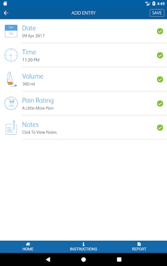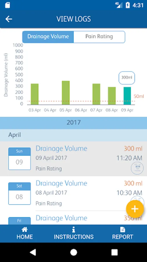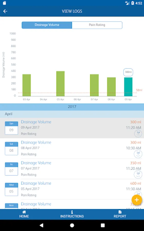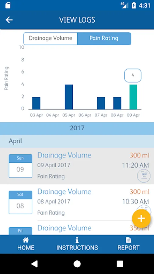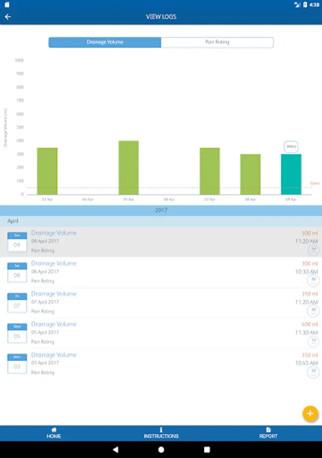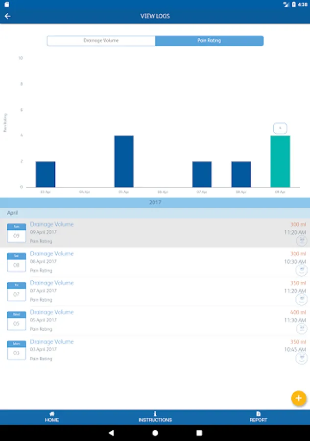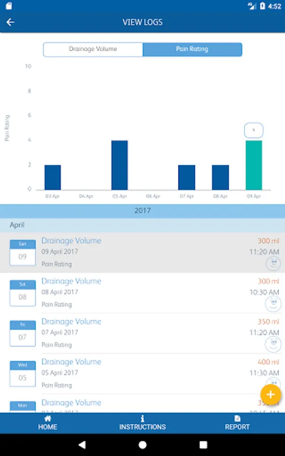 * Add pain ratings, notes and pictures to your drainage entries that will help you and your physician as you review your data