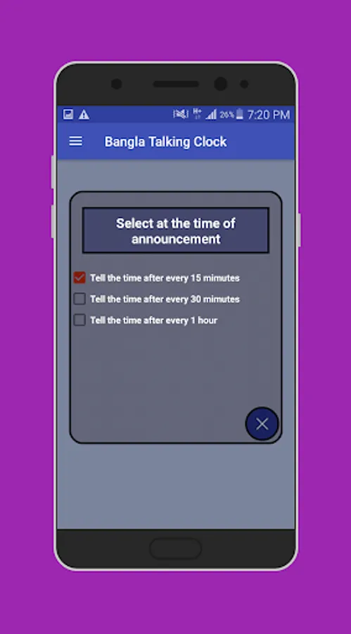 ( বাংলা কথা বলা ঘড়ি অ্যাপটি ব্যবহার করা একদম সহজ । আপনি সময় শুনতে পারবেন প্রতি ১৫ মিনিট, ৩০ মিনিট ও ১ ঘন্টা পর পর।