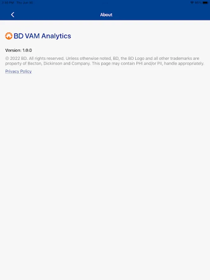 The BD VAM Analytics Mobile app is a data collection tool for hospital staff and BD clinical specialists to collect vascular access related data at the hospital's facility.