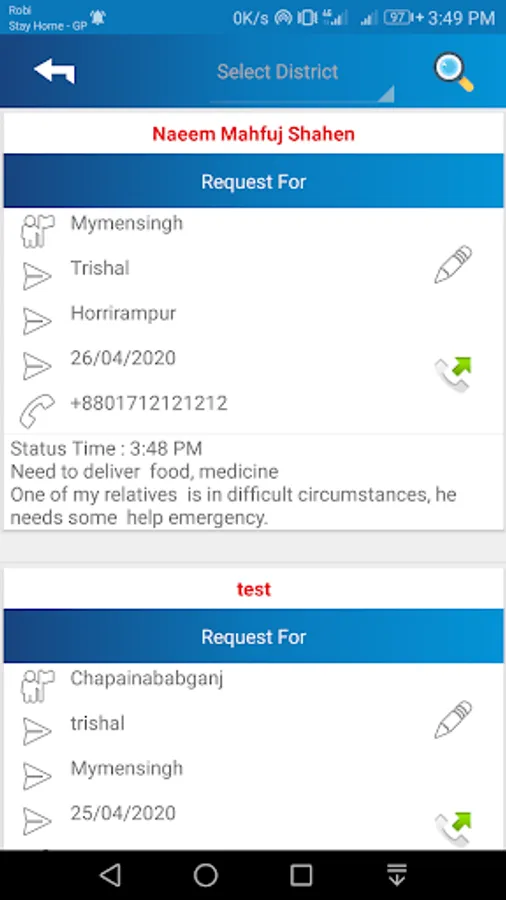 ✔District wise volunteer searching