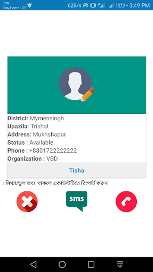 ✔ For emergency situation anyone can contact with the local organization through phone call.