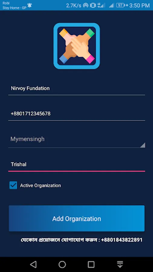 ✔ Opportunity to Add Organization .