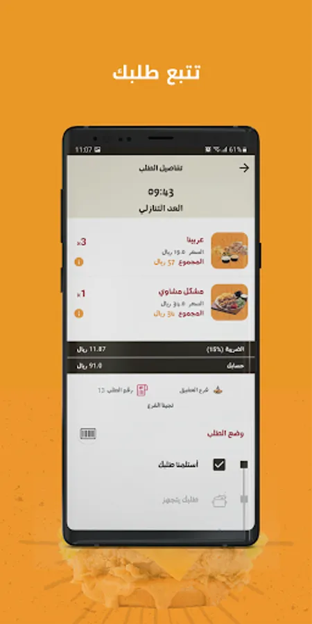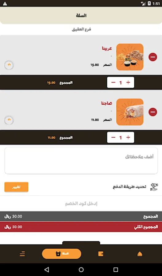 - اضغط تم والطلب على أحر من الجمر لك يتحضر