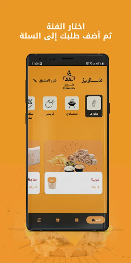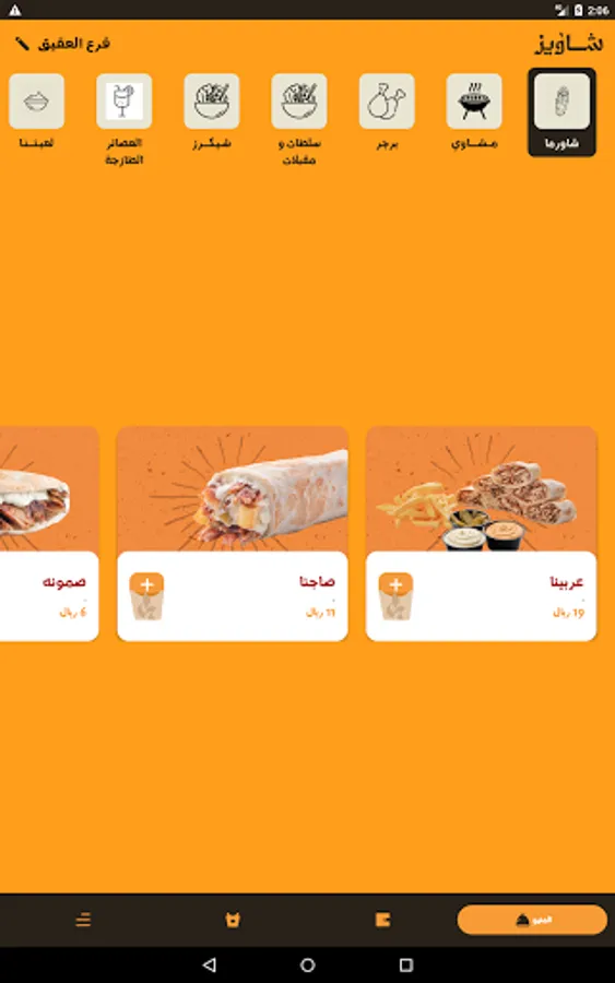 - حدد إذا ودك تطلب أو تبي تشوف قائمة الأكل