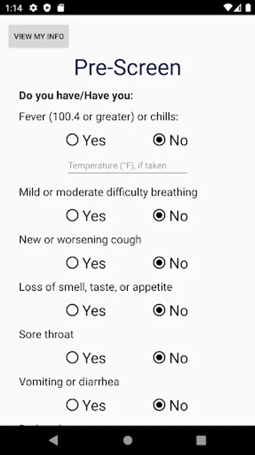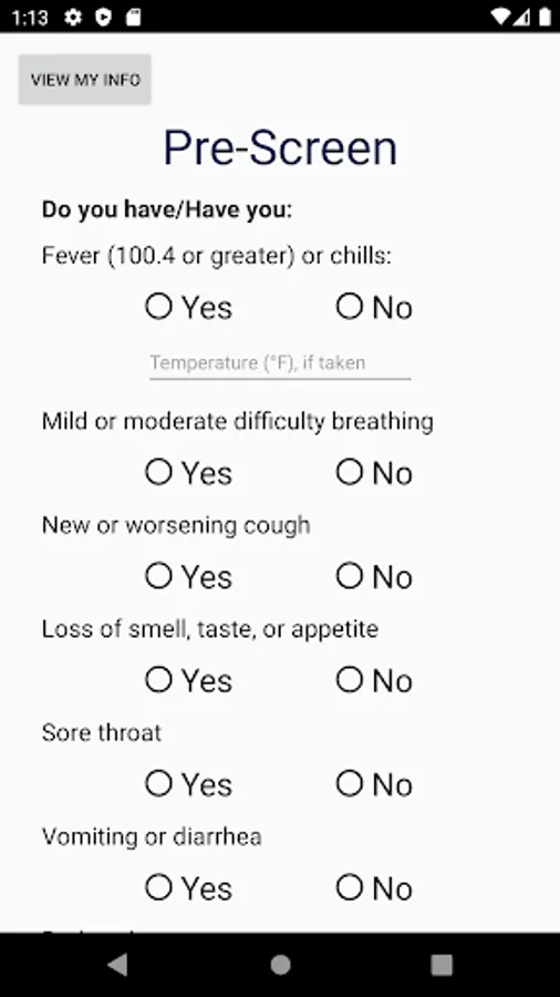 This app is a prescreen for students and staff at Berean Christian High School. Students and staff will fill out this questionnaire in order to enter school every day.