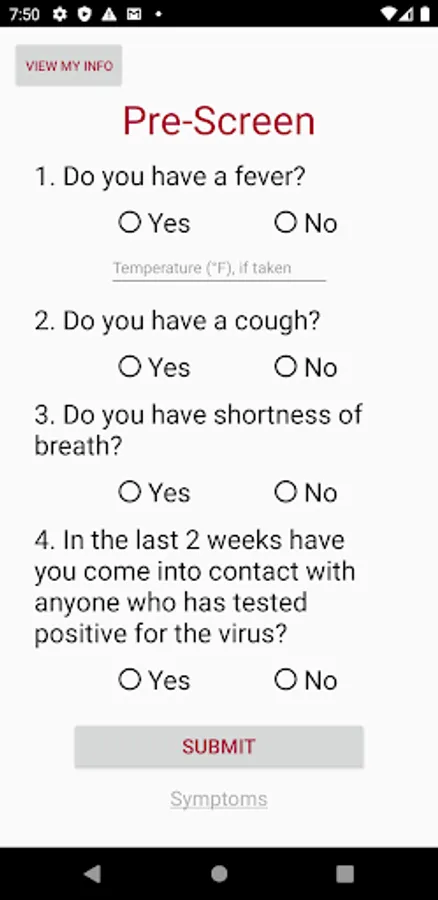 This app is a prescreen for students and staff at Carondelet High School. Students and staff will fill out this questionnaire in order to enter school every day.