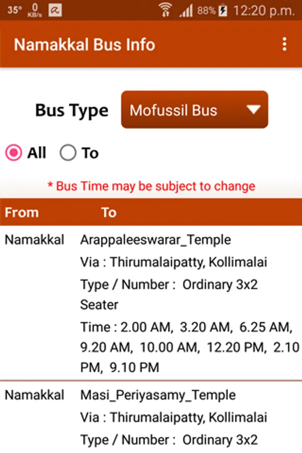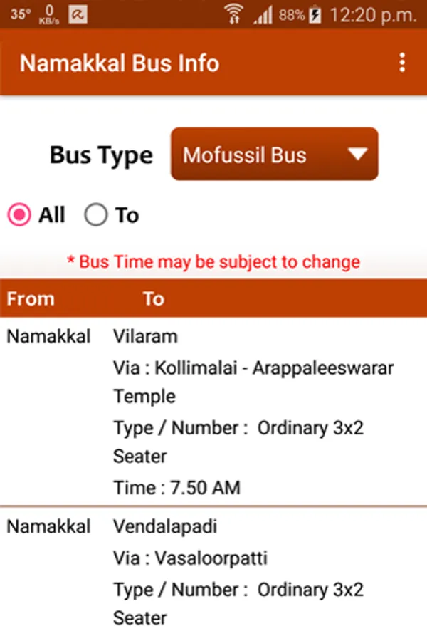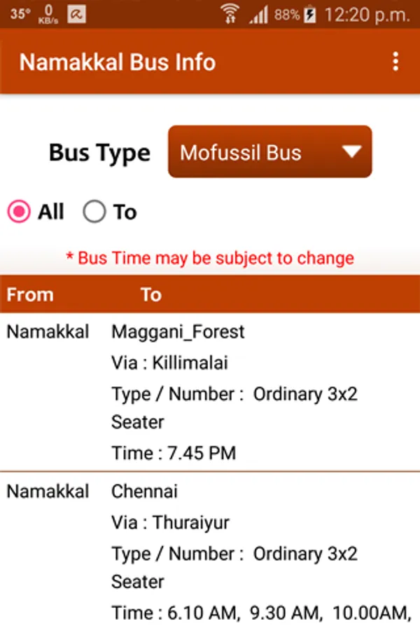 This app provide all information about Namakkal Mofussil bus and Town bus.