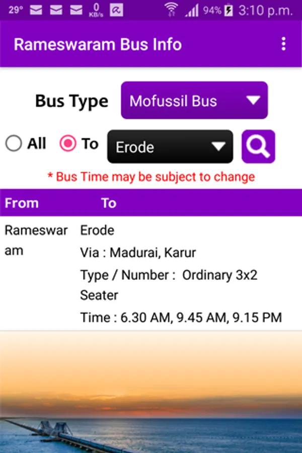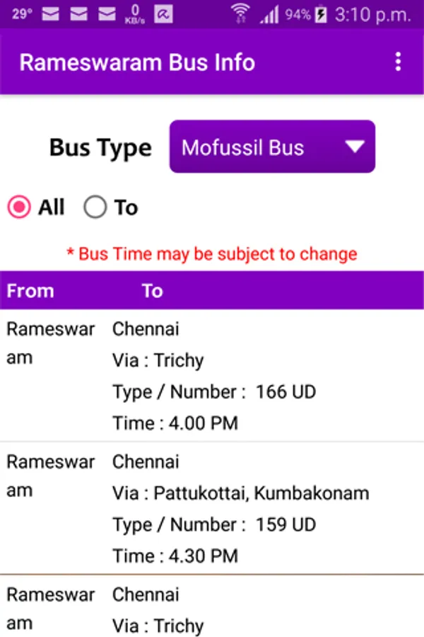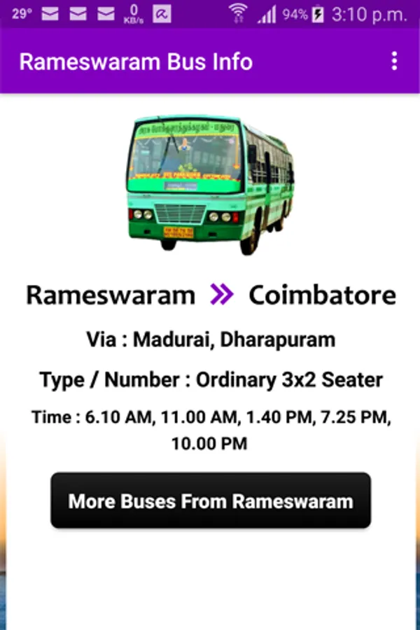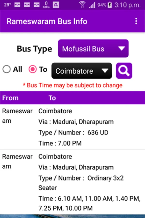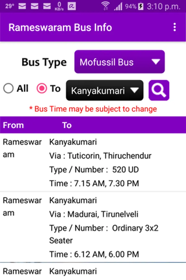 This app provide all information about Rameswaram Mofussil bus and Town bus.