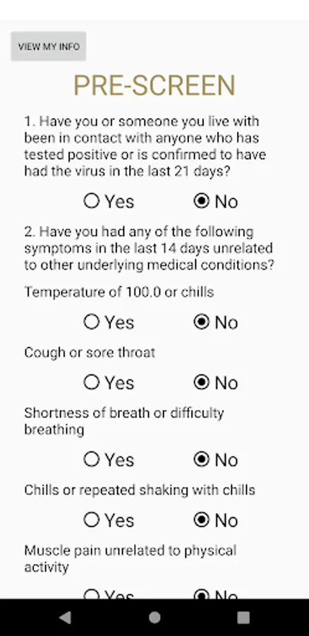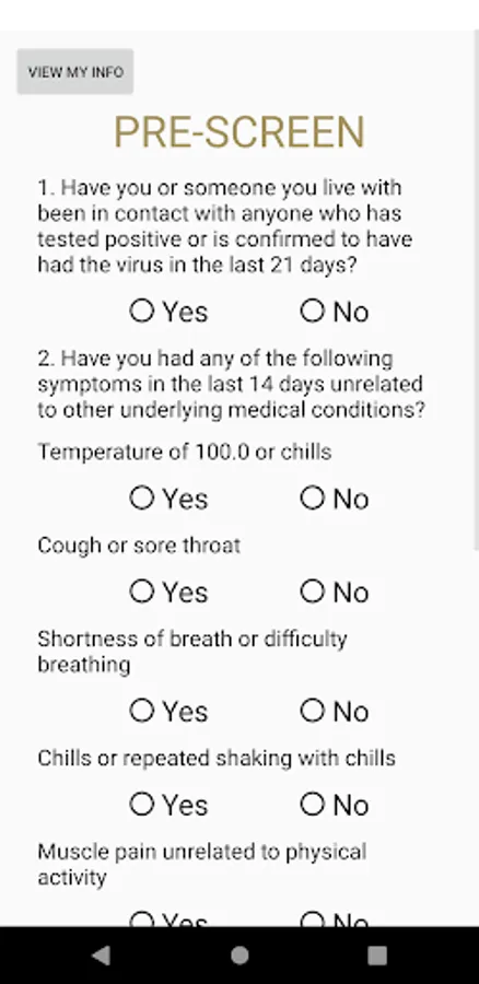This app is a prescreen for students and staff at Servite High School. Students and staff will fill out this questionnaire in order to enter school every day.