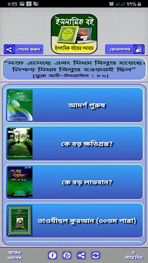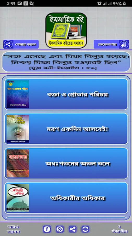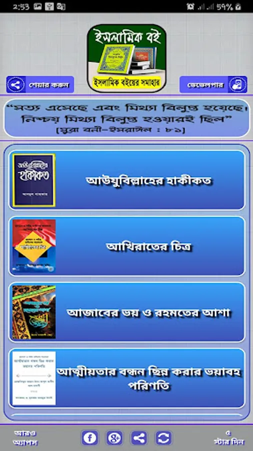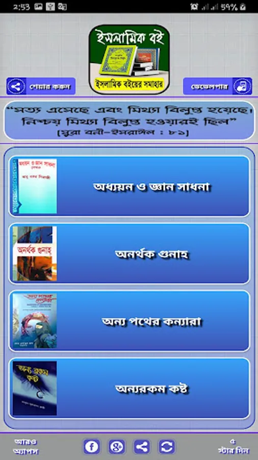 আব্দুর রাজ্জাক বিন ইউসুফ এর লেখা বই সহ এই অ্যাপে থাকা সকল লেখকের বই এর নাম এবং লেখকের নাম দেওয়া হলঃ