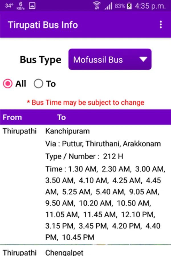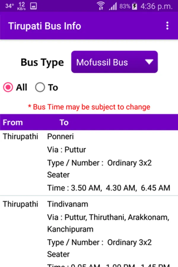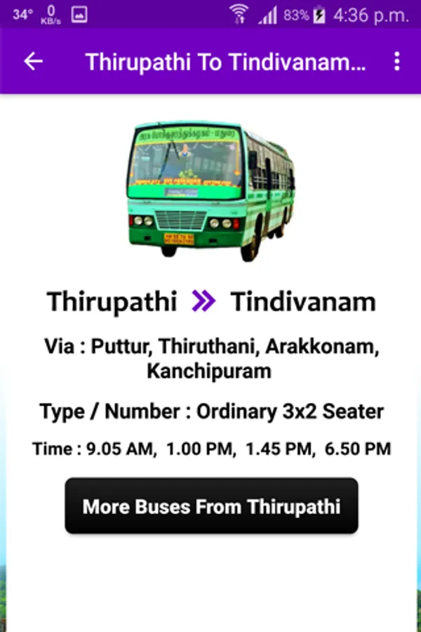 This app provide all information about Tirupati Mofussil bus and Town bus.