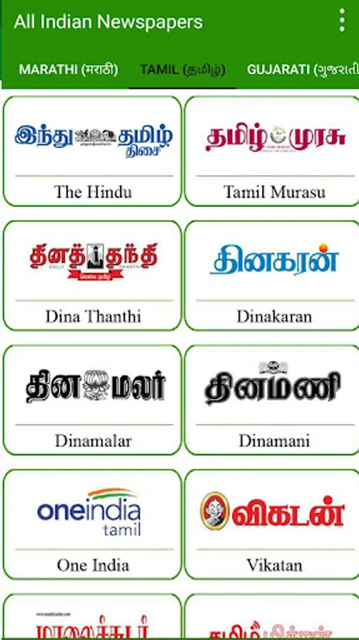 Dina Thanthi is a Tamil language daily newspaper. Dinakaran is a Tamil daily newspaper distributed in India. Dinamalar is a National Tamil daily newspaper. Dinamani is a Tamil daily newspaper. Tamil Murasu is a Singapore based Tamil language newspaper.