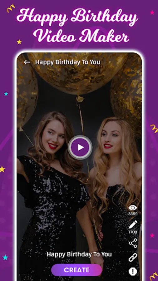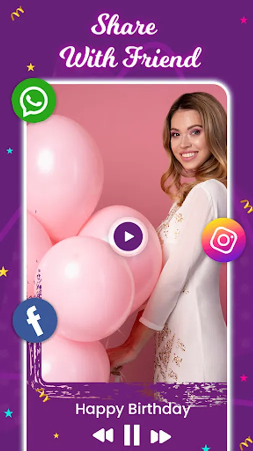 Birthday video creator makes bday video in few seconds from your selected images and songs. Enjoy all birthaday features in one app like quick birthday video maker, slideshow maker, bday animation maker, and birthday status maker.