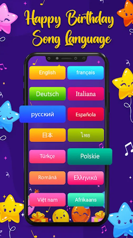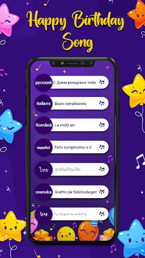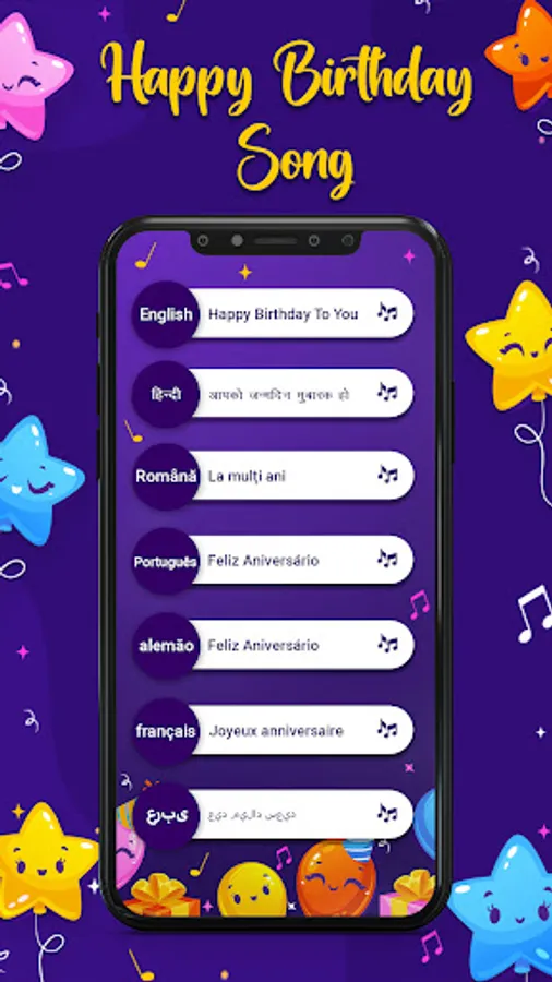 It features birthday song of languages like English, Spanish, French, German, Portuguese, Arabic, Nepali, Japanese, Indonesian, Russian, Italian and Urdu.