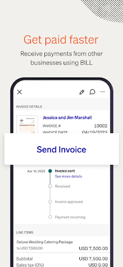 The BILL AP & AR app simplifies business payments and receivables for companies of all sizes. Whether you’re focused on accounts payable, accounts receivable, or just looking for an easy way to collect payments from a customer, BILL AP & AR streamlines tedious, manual processes—saving you 50% of the time spent paying and approving bills and helping you get paid 2x faster.
