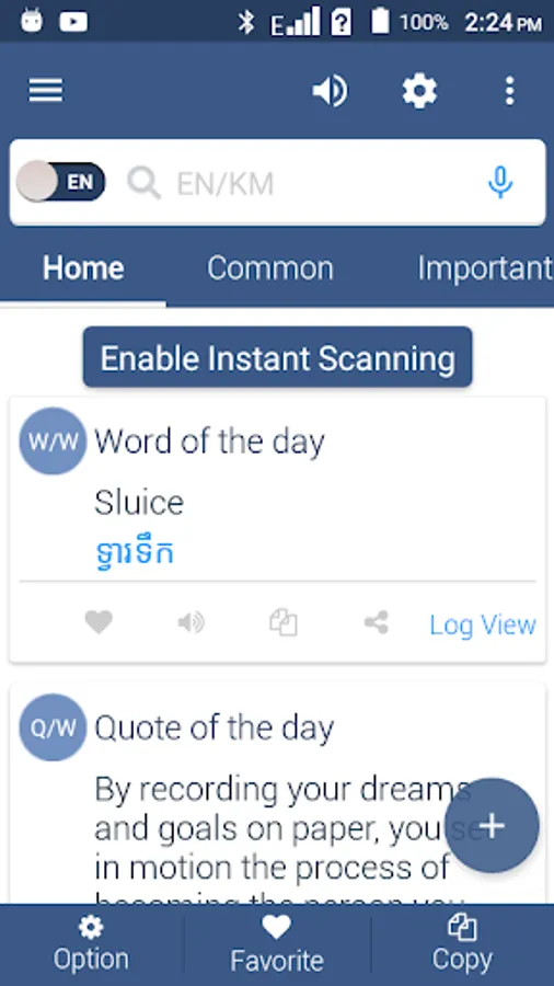 Instant Scanning features: At first you have to enable instant scanning from display settings or home screen , During using browser or any other application please select the word or words and then press copy. You will see instant meaning of this word without opening dictionary.
