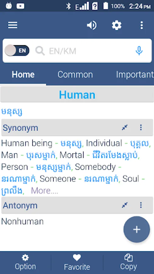 Relevant and important words are listed and synced with search that gives advantage of a word book of Khmer and English.