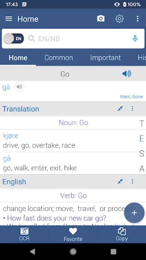 This Norwegian Dictionary has the facility of searching both from English to Norwegian and Norwegian to English.and English to English meaning with example.