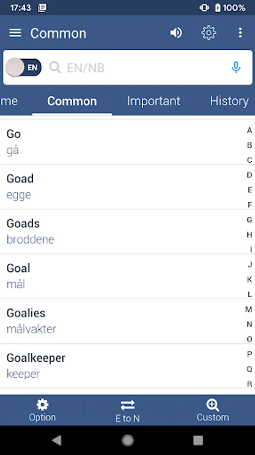 Relevant and important words are listed and synced with search that gives advantage of a word book of Norwegian and English.