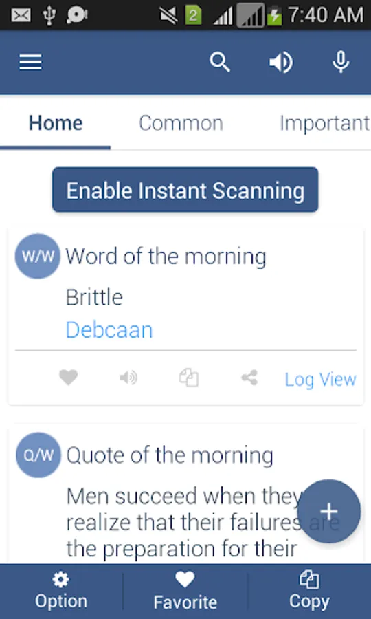 Instant Scanning features: At first you have to enable instant scanning from display settings or home screen , During using browser or any other application please select the word or words and then press copy. You will see instant meaning of this word without opening dictionary.