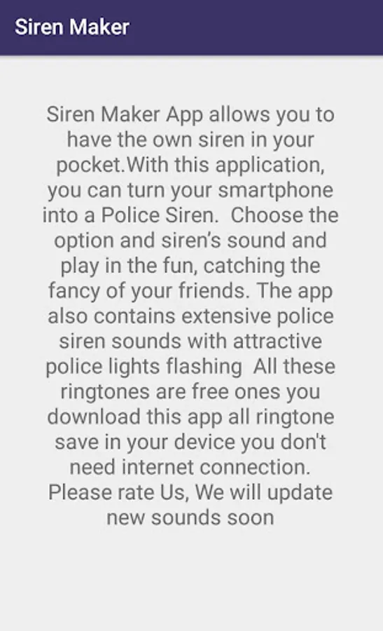 Police siren Maker sound app allows you to have the own siren in your pocket.With this application, you can turn your smartphone into a Police Siren.