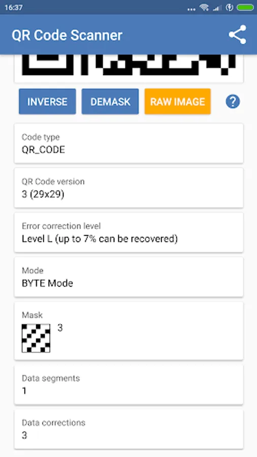 QR Code Scanner allows you to create QR codes using custom properties like QR size, correction levels, modes like byte, alphanumeric, kanji, numeric, hanzi and use custom masks.