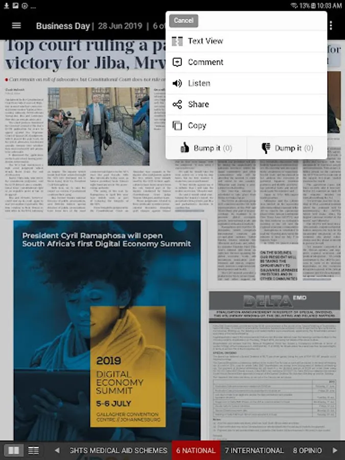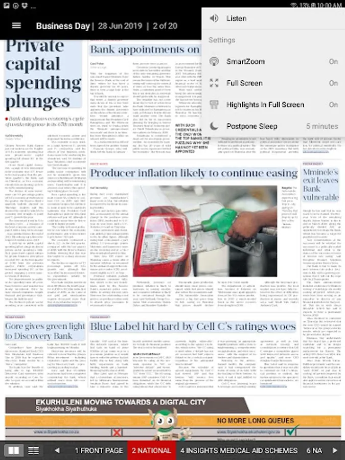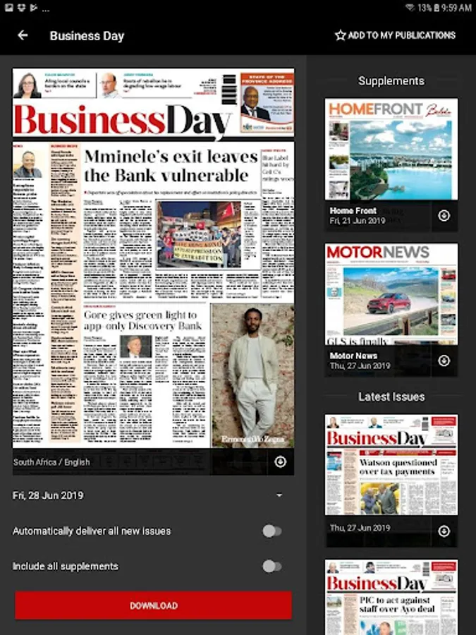 Business Day is South Africa's most influential source of business news and analysis, with incisive coverage of business, finance, companies, the political economy, labour and other current affairs, written by a staff of expert and award-winning journalists. This app lets you read the daily e-edition of Business Day – an exact digital replica of the printed newspaper. The app is free to download but you’ll need a subscription to access the full e-edition.