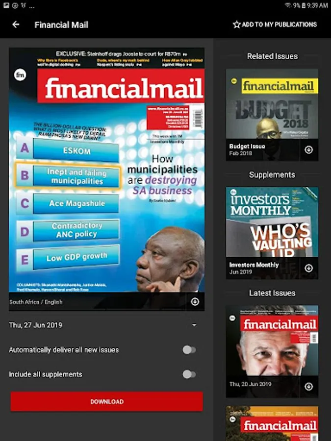 The Financial Mail is a weekly national South African magazine for the country's top business minds. Based in Parktown, Johannesburg, it is published by Tiso Blackstar Group, which is also the parent company of Business Day and Business Day TV. The magazine, launched in 1959, is regarded as a must-read by the business and investor community, publishing financial, economic and political articles that go far beyond beat reporting to provide in-depth analysis of industry and commerce.