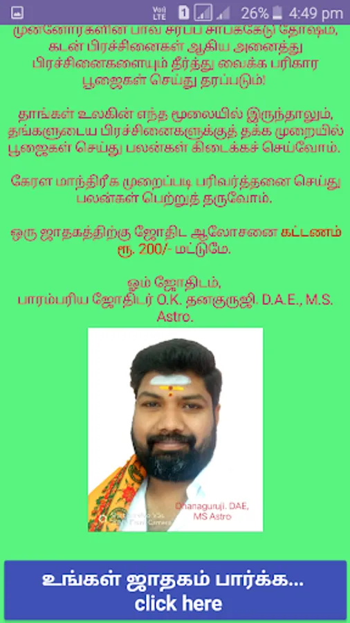 Traditional astrologer O.K. Tanakuruji. D.A.E., M.S. Astro.
