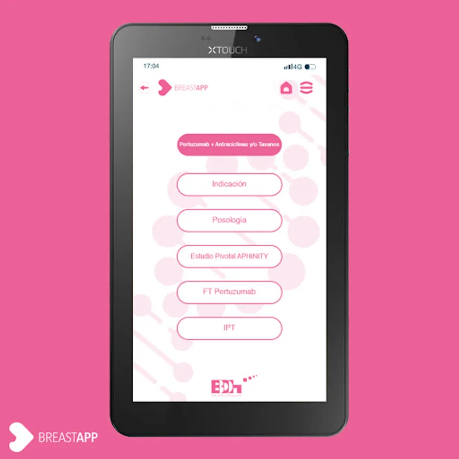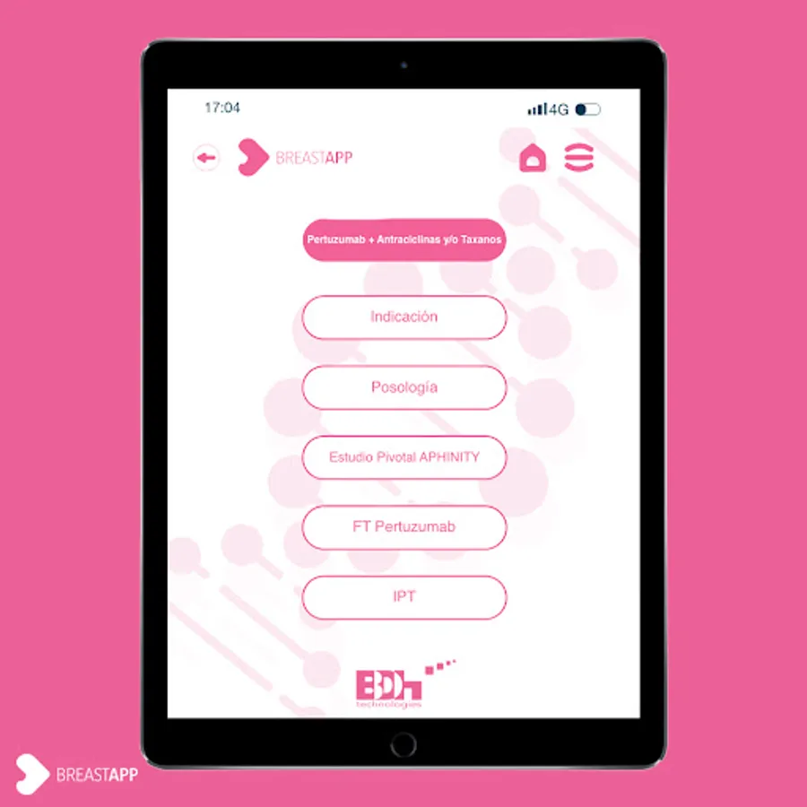 BreastAPP is a multiplatform tool, available for mobile devices or through the Web, aimed mainly at medical professionals, which collects all the updated information regarding the different existing therapeutic options for breast cancer, with the aim of providing the specialist with the information most up-to-date in this area of knowledge. It is a free application, and to access it, only minimal registration is required.