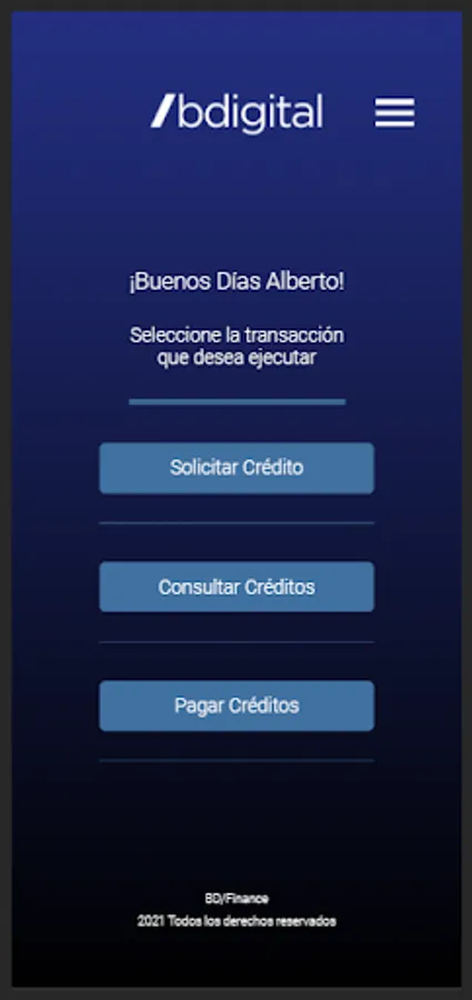 Internet banking solution focused on self-management of loans that allows clients of your BD / Finance, to electronically self-serve financial services for granting loans in a safe, efficient, innovative and simple way.