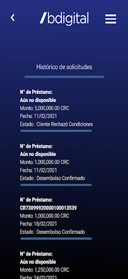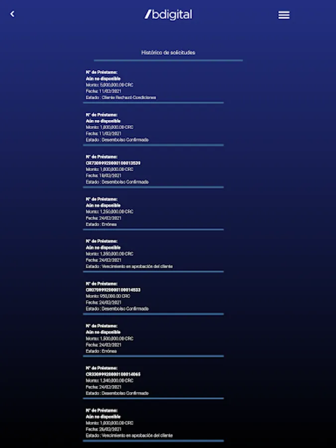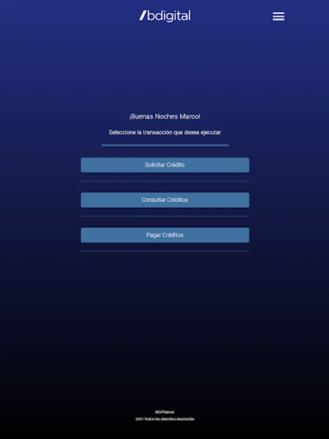 Internet banking solution focused on self-management of loans that allows clients of your BD / Finance, to electronically self-serve financial services for granting loans in a safe, efficient, innovative and simple way.