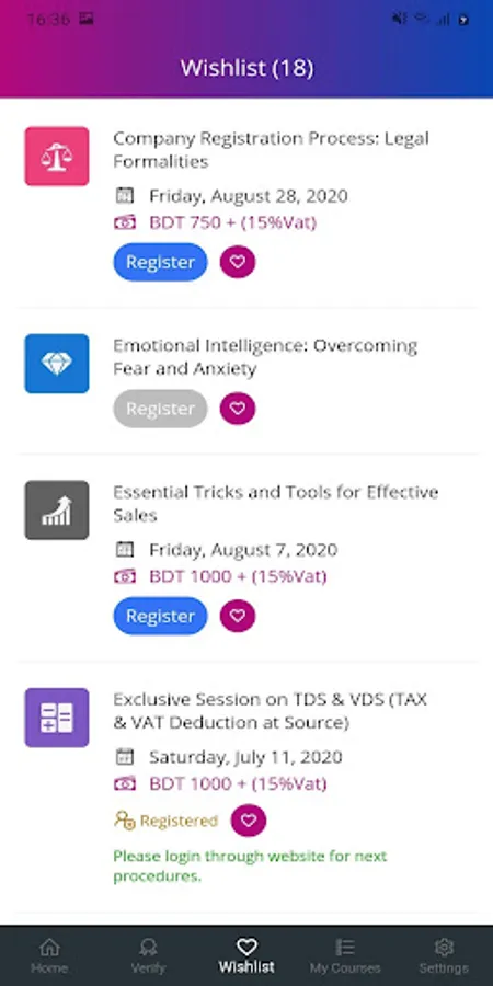 * Wishlist Training - Wishlist your preferred training course for easy access in the future.