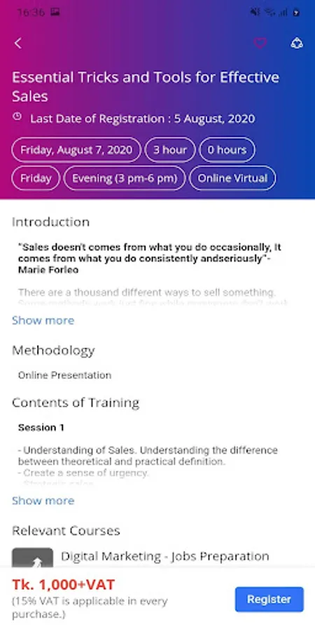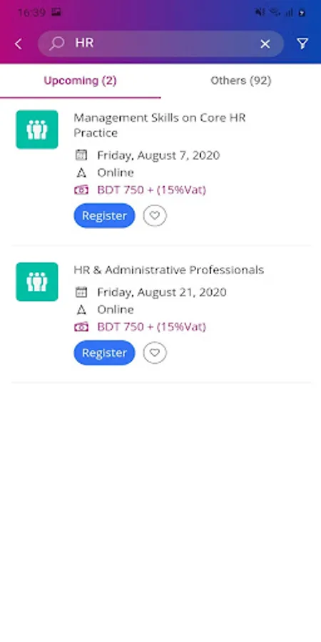 * Register Training - Register your favorite training course just by a single tap of your finger.
