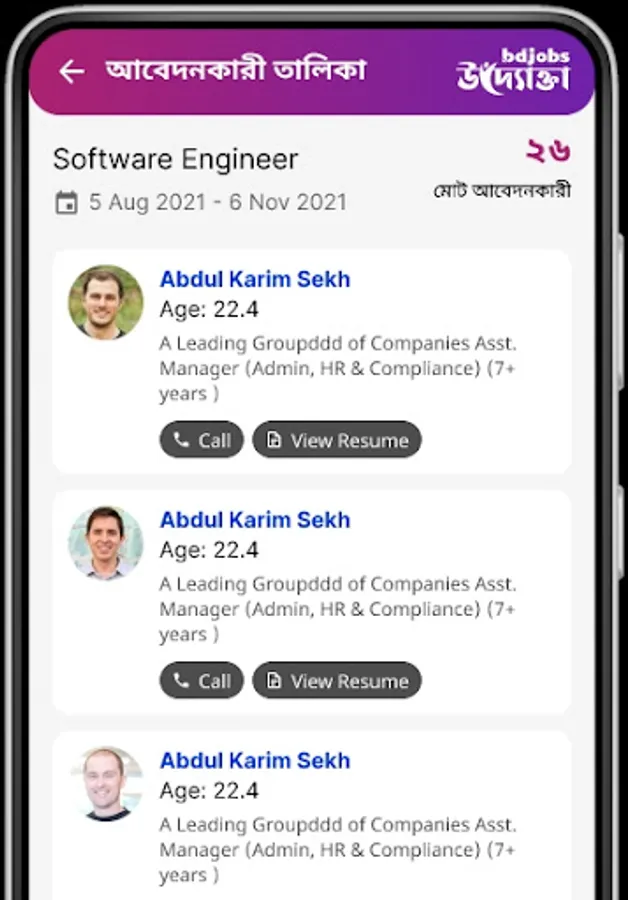 The Uddokta App allows you to contact the applicant with just one tap using a phone call as you wish.