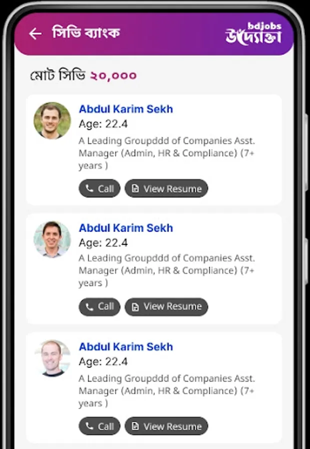 Every day, more than 750 people apply for each job post on Bdjobs.com's site. So, to make things easier for you, we've created an easy-to-use app that lets you go through the easy hiring process from anywhere, at any time. With the Uddokta app, you can look through millions of job seekers to find the right one. It's a small, all-in-one app that fits in your fist. Uddokta, the all-in-one: