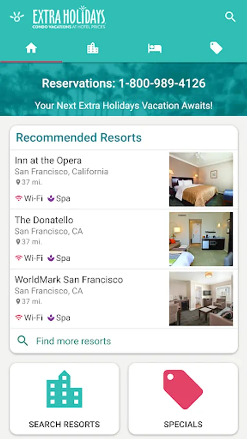 Extra Holidays specializes in offering resort stays at hotel prices with quality vacation accommodations throughout the United States, Virgin Islands, and Puerto Rico. The Extra Holidays app quickly and easily connects you to the best resort stays available.