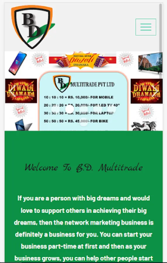 B.D. Multitrade is a Network Marketing Company with wide range to day to day needed products.