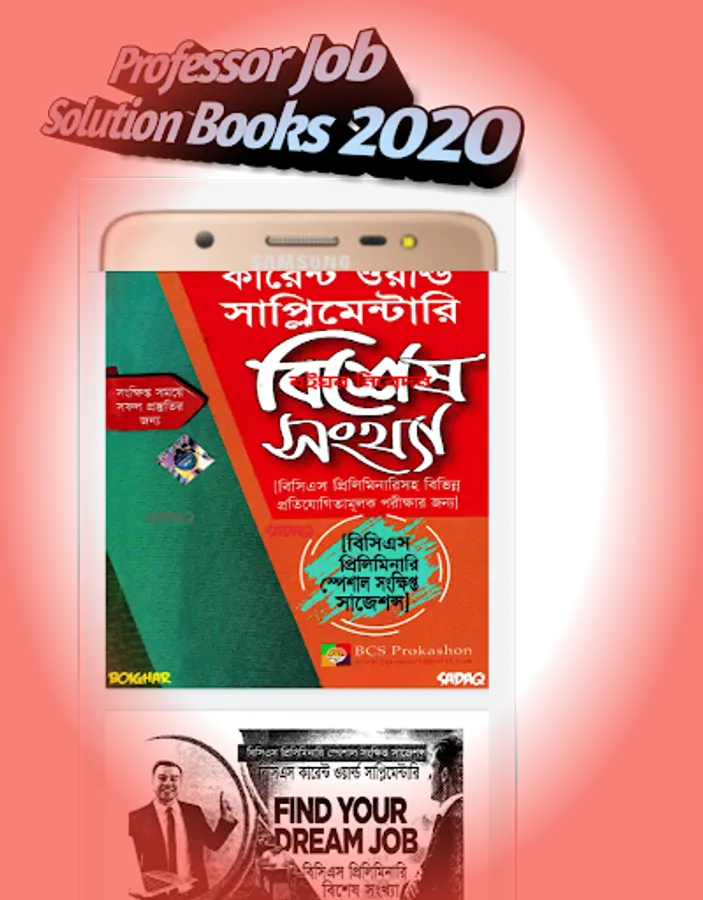 Professor job solution book app is best app for any government or non government job solution exam. This app providing you free professor job solutions book and BSC exam books or BCS preliminary exam books totally free. Professors job solutions book app alert you when where and how much exam available around your Government job exam or non Government job exam per day. Its mean this app also inform you any kind of job circular informations. If you are a job examine than i would say you, regular use this app for make you perfect for your any exam.