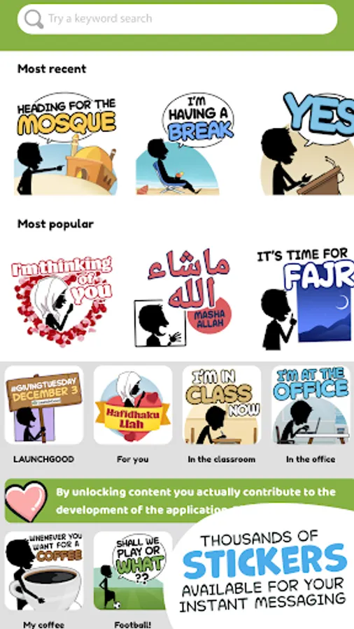 - A Stickers section, to download hundreds of images automatically installed in your whatsapp (or to install yourself on other instant messaging applications)