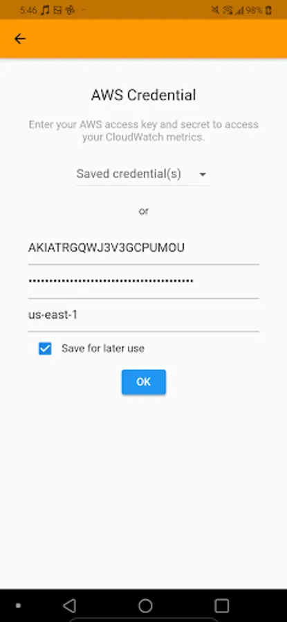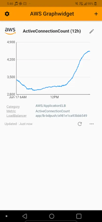 Using your AWS access key and secret access key you can add AWS CloudWatch graphs to the main screen of the app. These graphs can be added to your iPhone home screen.