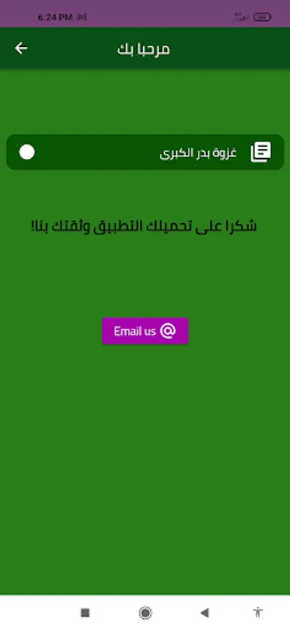 يمكنك التنقل بين أزرار تطبيق غزوة بدر الكبرى بسهولة