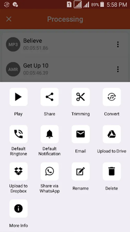 With Audio Converter, you can create your own ringtones for your device, convert any audio format to another format including MP3, AAC, M4A, OGG, WMA, OPUS, etc. then you can create your albums with your high quality audio clips to listen them any time you want, share them with your friends through social media including WhatsApp, Soundcloud and Facebook and more or even combine them with your video clips.