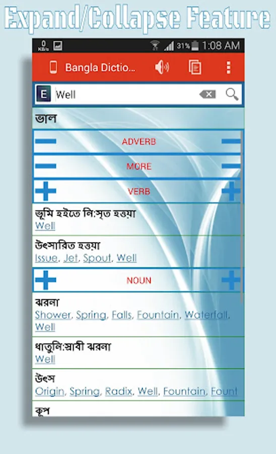 * Text to speech feature to know the correct pronunciation.