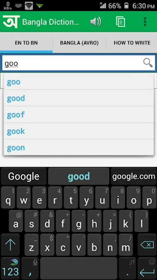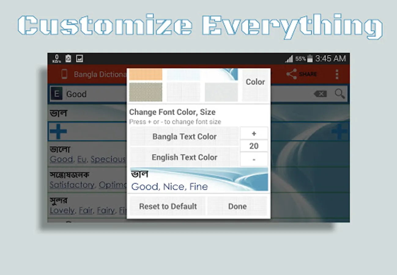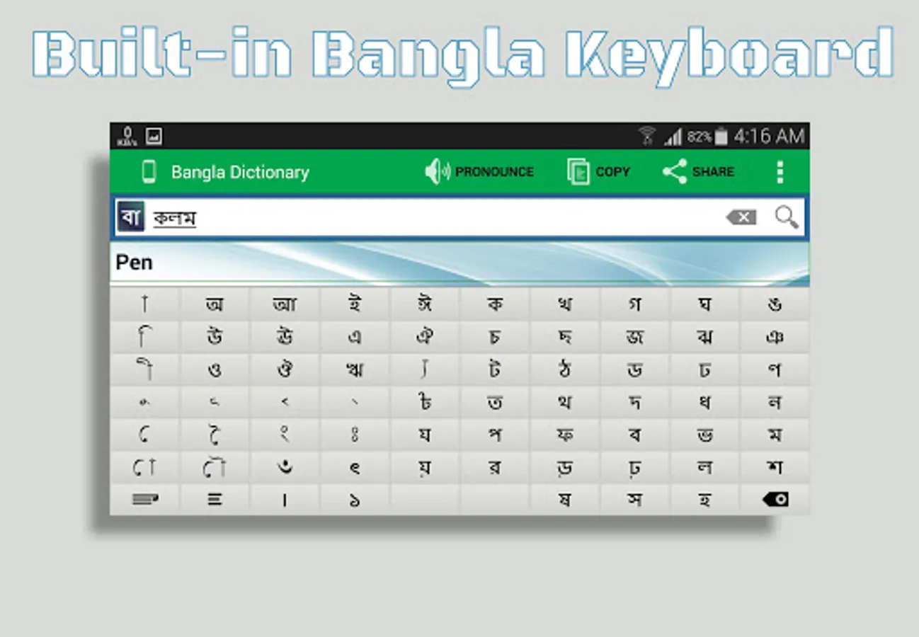 * Built-in keyboard to write Bangla words.