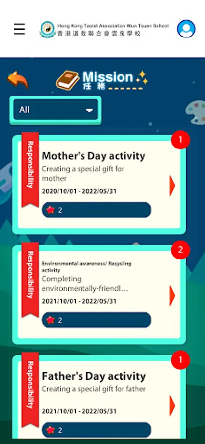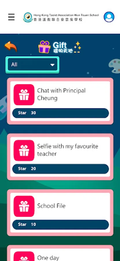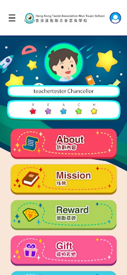 The "Reach for the Stars Reward Scheme" is a rewards programme of the Hong Kong Taoist Association Wun Tsuen School (HKTAWTS) that aims to contribute in empowering our students to be healthy, happy and good kids. The "Star" has the meaning of constantly shining upwards. "Getting a star" means to achieve an ideal while also facing challenges and difficulties in the process. This programme is a key initiative to promote the whole-person development of our students.