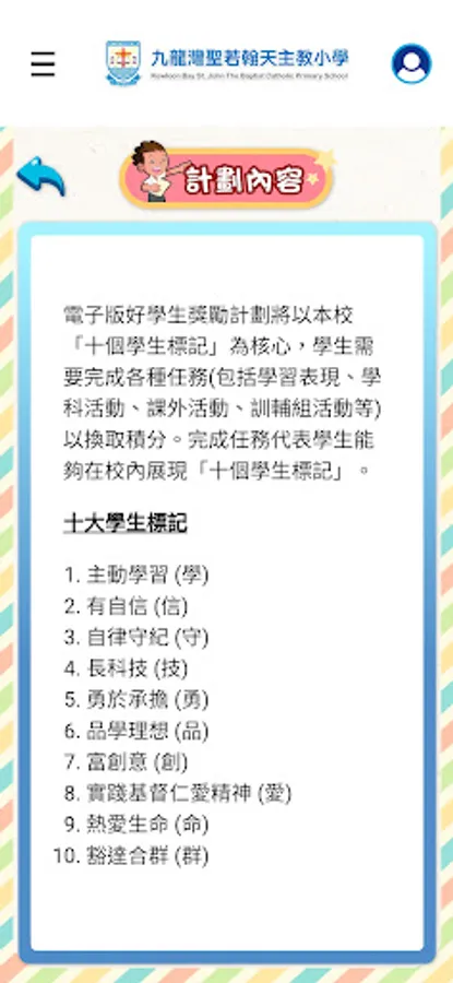 The electronic version of the Good Student Award Program will be based on the school's "Ten Student Marks". Students need to complete various tasks (including academic performance, academic activities, extracurricular activities, training group activities, etc.) in exchange for points. Each task represents one of the student marks, and completing the task means that students can display "ten student marks" in the school